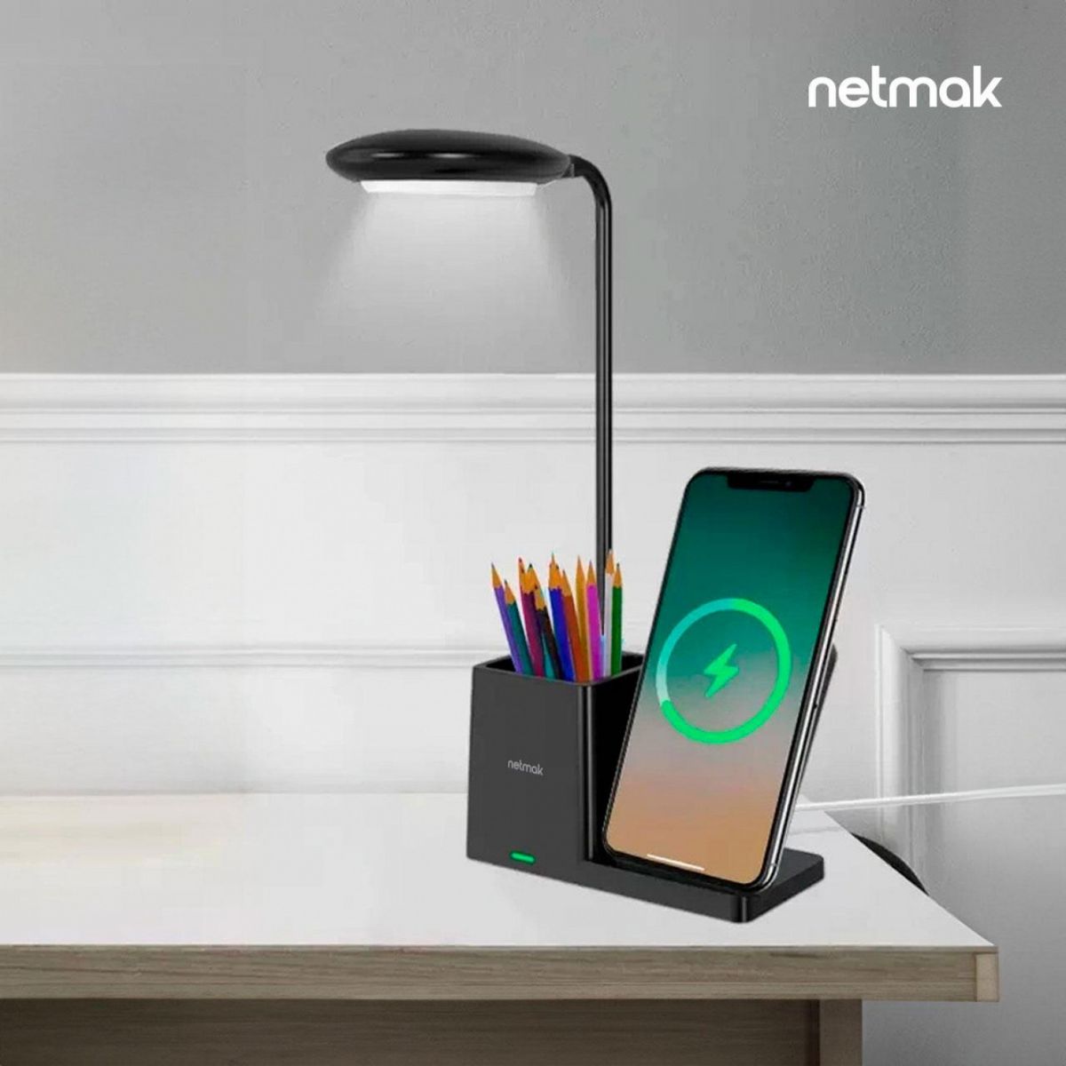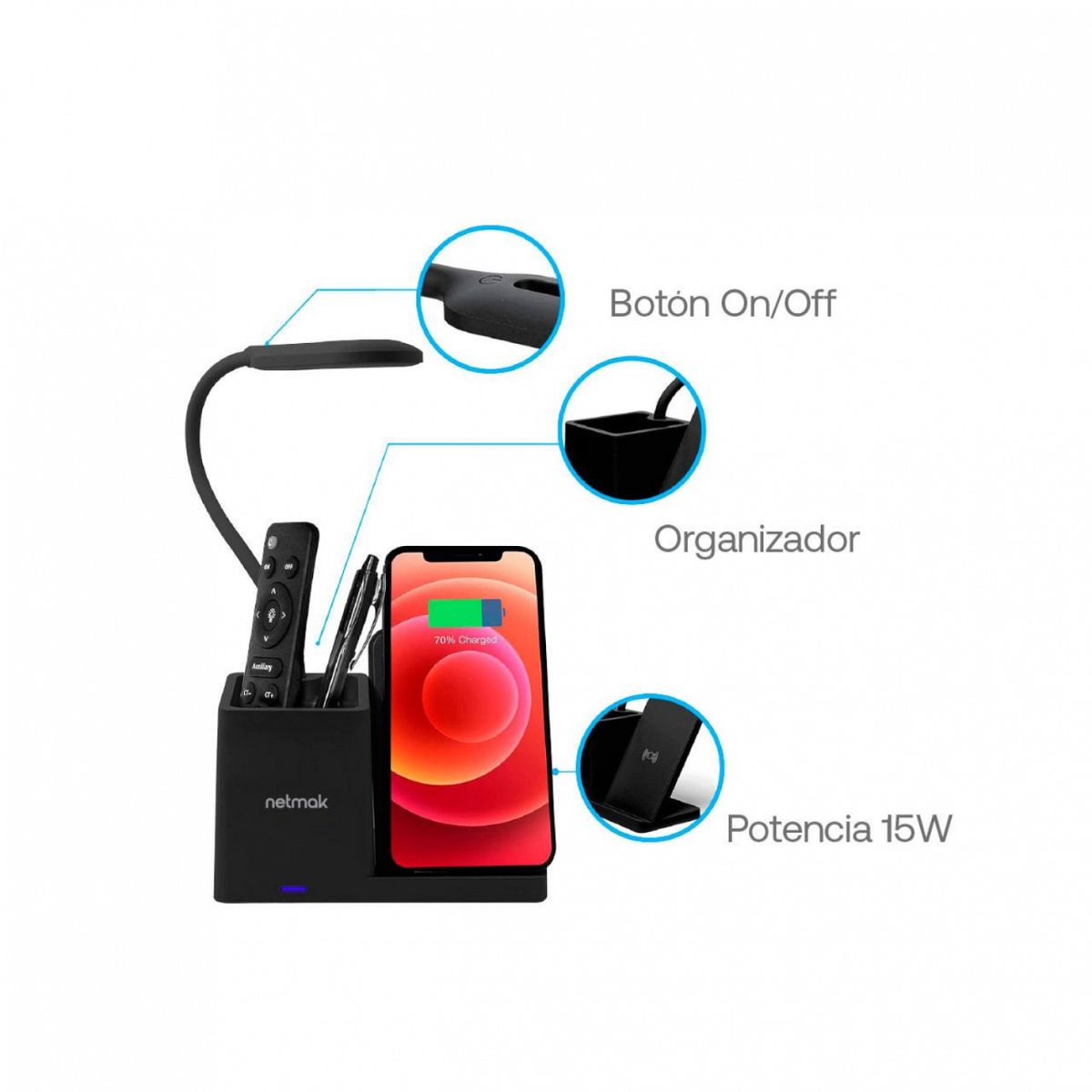 NETMAK BASE CARGA INALAMBRICA Qi 15w + LAMPARA