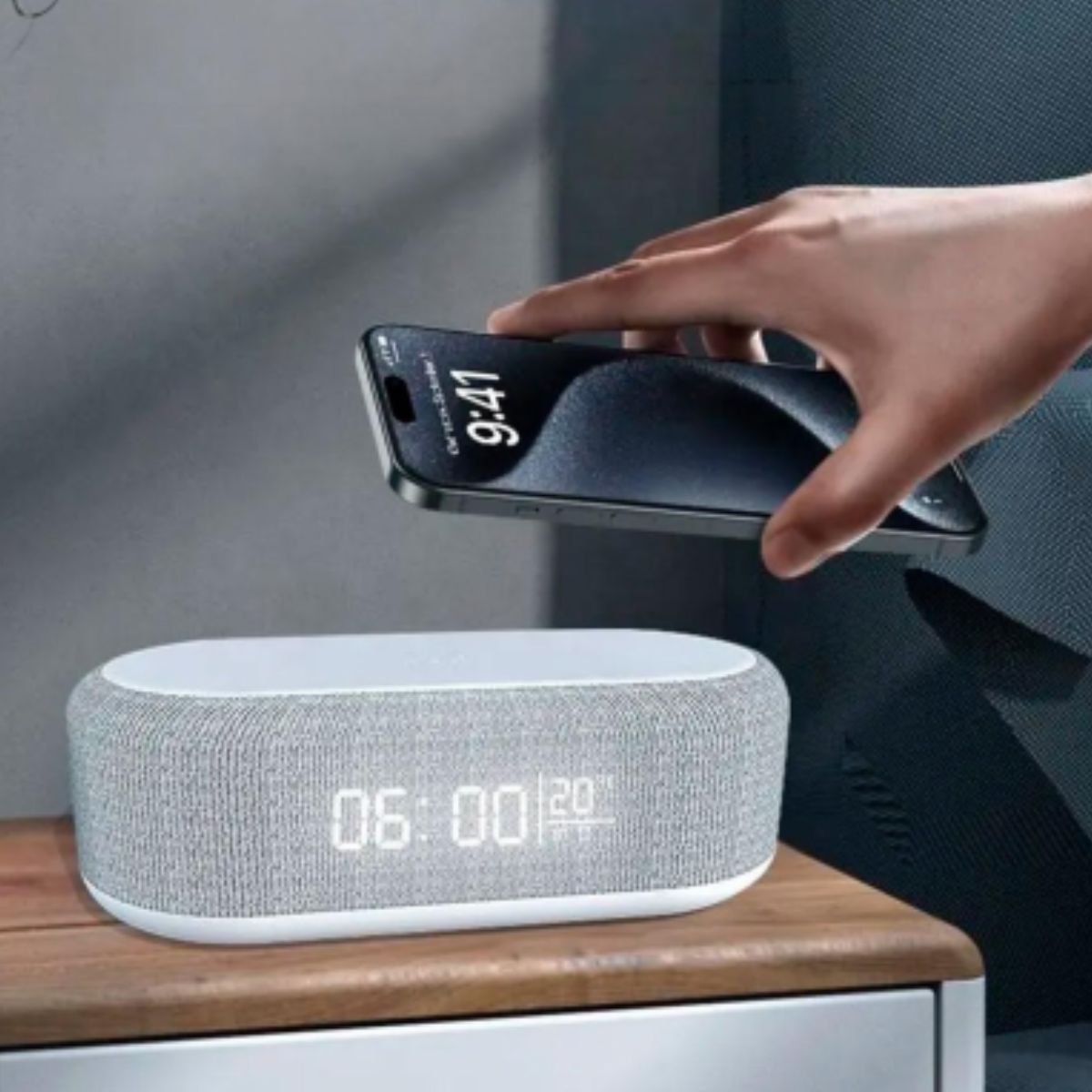NETMAK DESPERTADOR + PARLANTE Y BASE DE CARGA