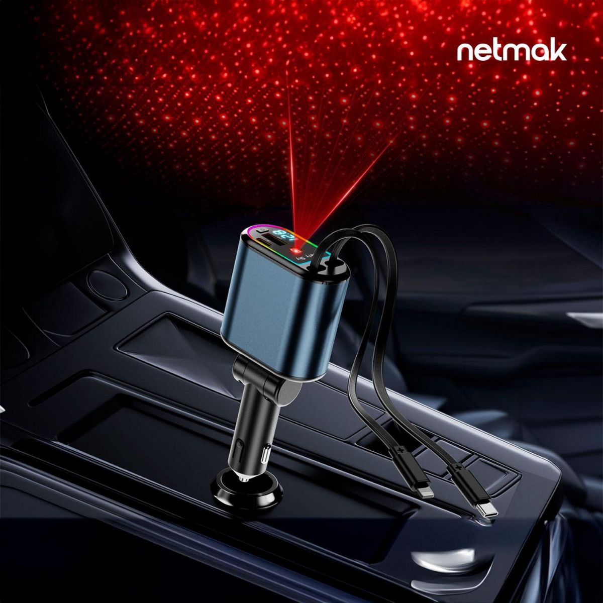 NETMAK CARGADOR P/AUTO 66W 4 EN 1 CON PROYECTOR