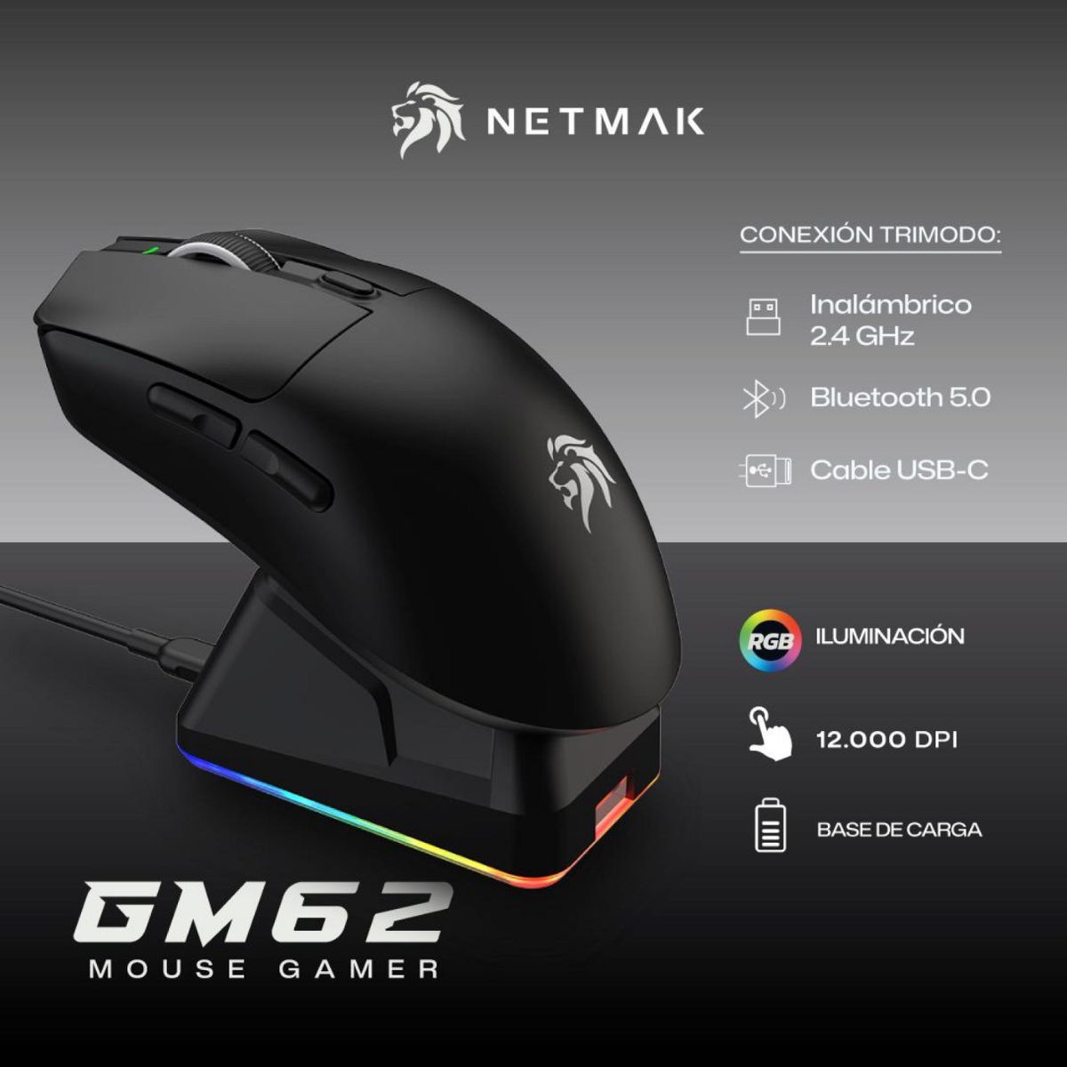 NETMAK MOUSE GAMER TRI MODO 12000 DPI NM-GM62